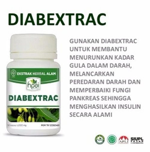 DIABEXTRAC HPAI merupakan obat herbal berkualitas untuk membantu menurunkan kadar gula dalam darah, melancarkan peredaran darah dan memperbaiki fungi pankreas sehingga menghasilkan insulin secara alami.